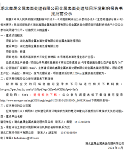 湖北鑫晟金属表面处理有限公司金属表面处理项目环境影响报告书报批前公示