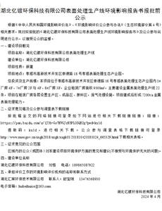 根据《中华人民共和国环境影响评价法》、《环境影响评价公众参与办法》(生态环境部令第4号)相关要求,现对拟报批的《湖北亿镀环保科技有限公司表面处理生产线环境影响报告书》及公众参与说明进行公示,以接受公众的监督。
