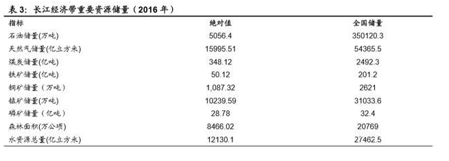 长江流域资源丰富,发展潜力大。长江经济带矿产资源优势明显。其中,页岩气、 地热等新型清洁能源开发利用前景好,锂、稀土、钒、钛、钨、锡等战略性矿产 资源储量丰富,是支撑长江经济带高质量发展的有利条件。据中国地质调查局资 料,长江经济带页岩气可采资源量为 15.5 万亿立方米,占全国 62%,稀土、钛 等储量占全国 80%以上,锂、钼、钨、锡、钒等资源储量占全国 50%以上。除 此之外,2016 年重要资源储量中,磷矿储量占全国比重最高,达到 88.8%。