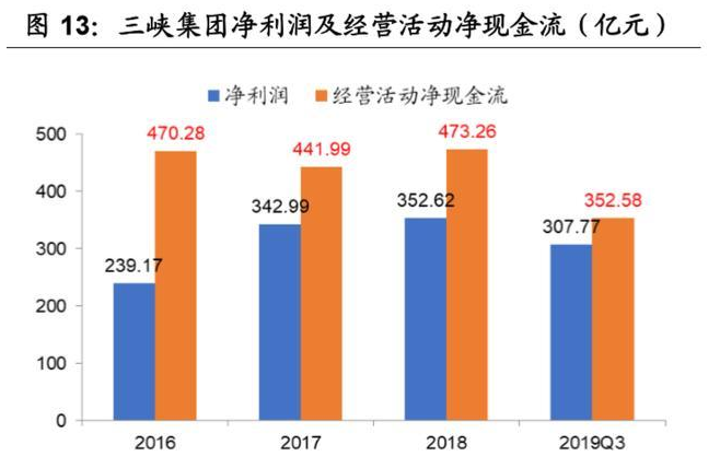 2)三峡集团资产雄厚,现金充足,资产负债率低具有很强的融资能力,长江大 保护的项目落地有资金保障。截止 2019Q3,三峡集团的总资产高达 8174 亿元, 净资产 4185 亿元,净利润 308 亿元,经营活动净现金流高达 353 亿元,而资产 负债率仅为 48.80%,健康的财务状况足以支撑三峡集团每年投资 300-500 亿元 的长江大保护项目。