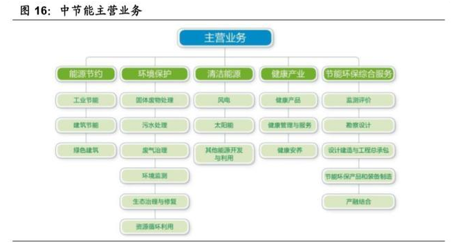 1) 中节能是一家主业为节能减排、环境保护的中央企业,是国内规模最大、产 业链最完整、综合能力最强的节能环保产业集团之一,在工业节能、固废处 理、污水处理、烟气治理、环境监测、土壤修复、重金属治理、风电、太阳 能等多项细分业务领域,规模和实力国内领先,尤其在环保领域深耕多年, 其田园综合体、“两园一链”固废综合处理模式在行业内具有较大影响力, 公司项目经验优势明显。