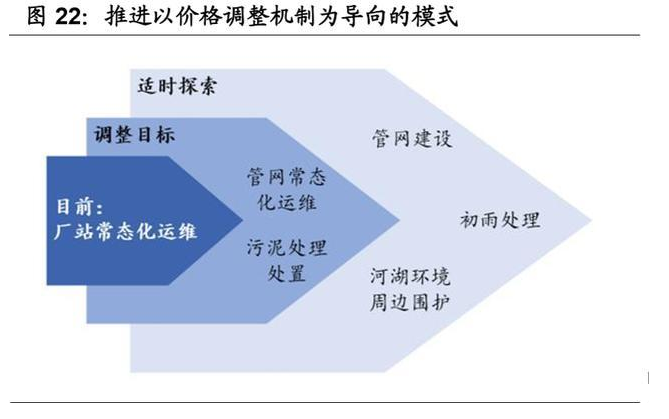 2) 聚焦价格机制的商业模式:价格机制作为城镇污水处理可持续发展的保障, 若价格机制不突破,则模式、治理路径的探索都受限制。当前的污水处理费 只能勉强覆盖污水处理厂的运营成本。三峡集团首先推进价格调整机制为导 向的模式,建议当地政府将污水处理收费标准调整到覆盖污水处理、污泥处 理处置成本和合理利润,时机成熟时再覆盖初雨处理、河湖环境等,并且建 立成本跟踪和污水处理服务费动态调整机制(3-5 年)。