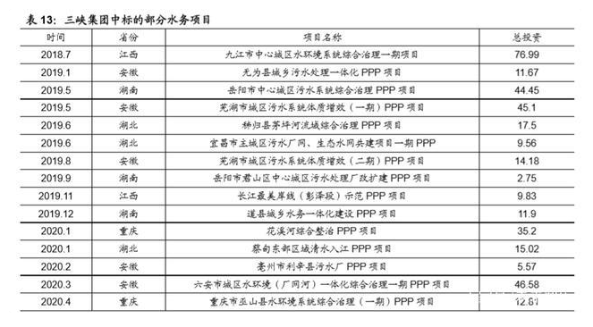 3) 聚焦政企互利共赢的合作模式:当地政府通过股权受让、成立合资公司等方 式向三峡集团转让存量污水处理相关资产获得资金,在不增加政府债务规模 的情况下,盘活资产存量,带动新增投资,加大对污水管网等基础设施新的 有效投资,实现资产变资本、资本变股份,打造资产、资本和项目良性循环。 此外三峡已经参股了北控水务、洪城水业、兴蓉环境等地方性水务龙头,全 面开展资本、业务、平台、项目合作,实现资金、管理优势与龙头企业技术、 经验、项目资源优势互补。